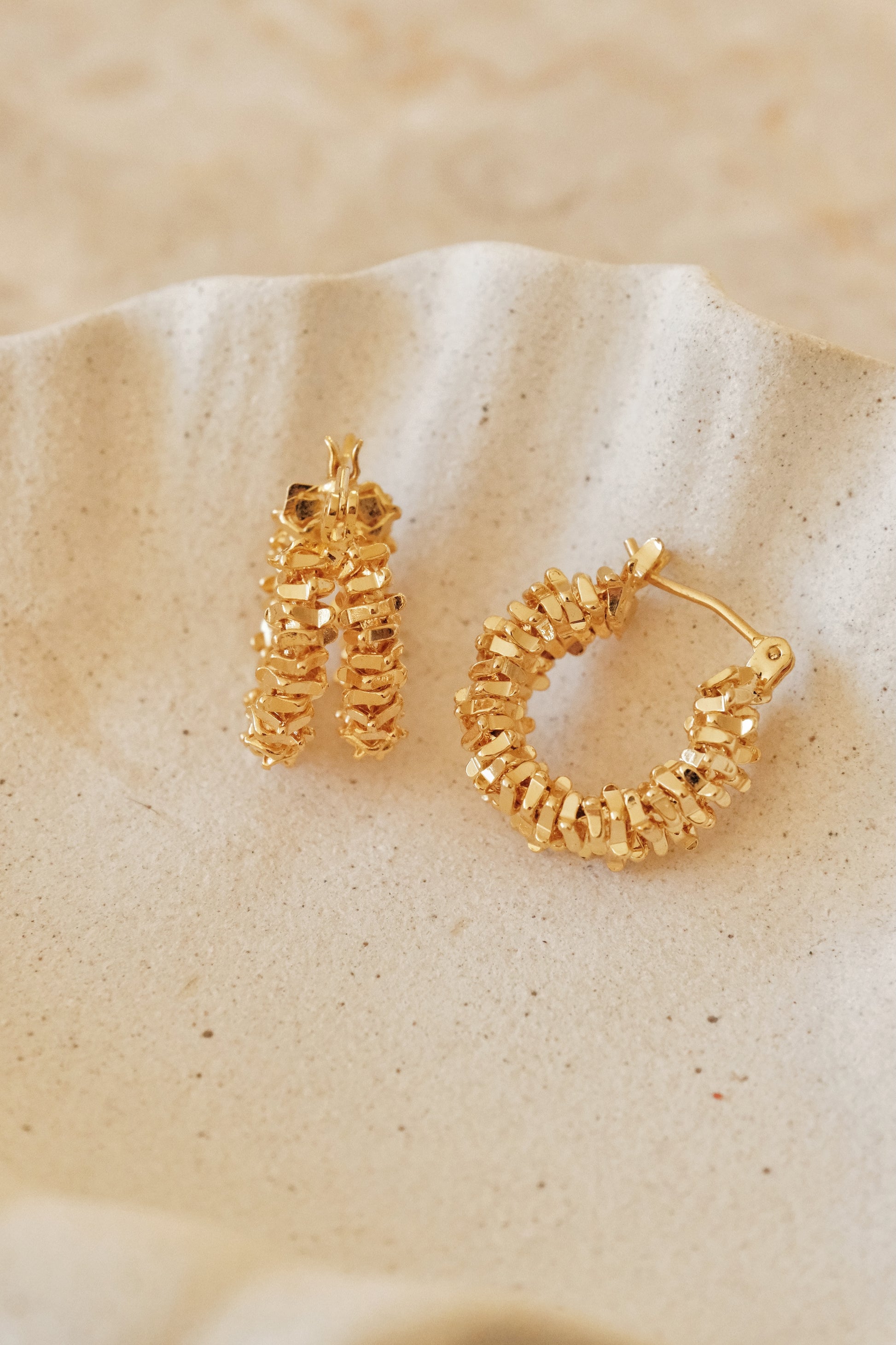 Hand-finished in 18K gold vermeil, these hoops bring warmth, energy, and elegance to your every moment — perfect for those who love statement pieces that still whisper sophistication.