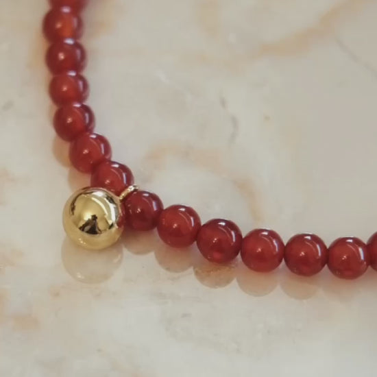 Introducing the "Lucky" Red Agate Gemstone Necklace—a symbol of hope, positivity, and elegance. Crafted with care, the vibrant red agate gemstones (3-4mm) are a reminder of strength and fortune, delicately set in 18k Gold Vermeil over sterling silver. This necklace serves as a personal talisman, embodying both grace and good luck, perfect for life’s most meaningful moments.