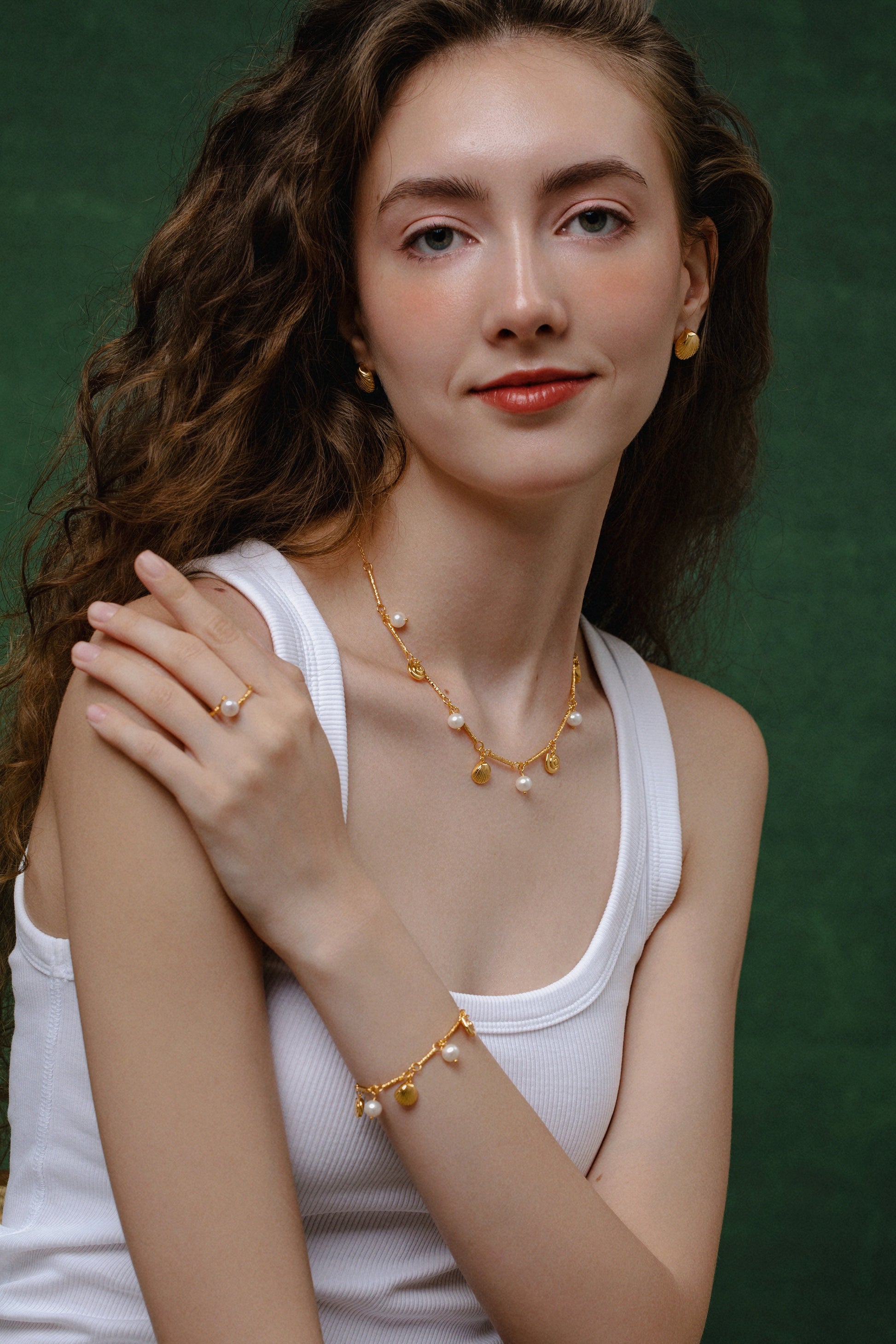 We believe that beauty should be accessible, responsible, and kind to the skin. That’s why every piece we create is thoughtfully designed to balance quality, style, and comfort—without compromising on affordability. Our collections are crafted using gold vermeil on sterling silver and brass, offering a luxurious look that’s both hypoallergenic and enduring. Sustainable, wearable elegance for every day.